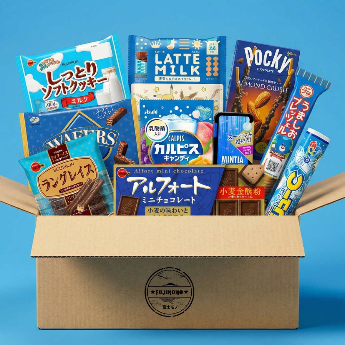 Discover the cool and refreshing side of Japanese snacks with the Fujimono Signature Blue Box, a carefully curated selection inspired by creamy milk flavors, rich chocolate, crisp biscuits, and refreshing soda and mint treats. This box offers a well-balanced mix of sweet, creamy, and savory snacks, making it perfect for gifting or enjoying a relaxing taste of Japan at home.