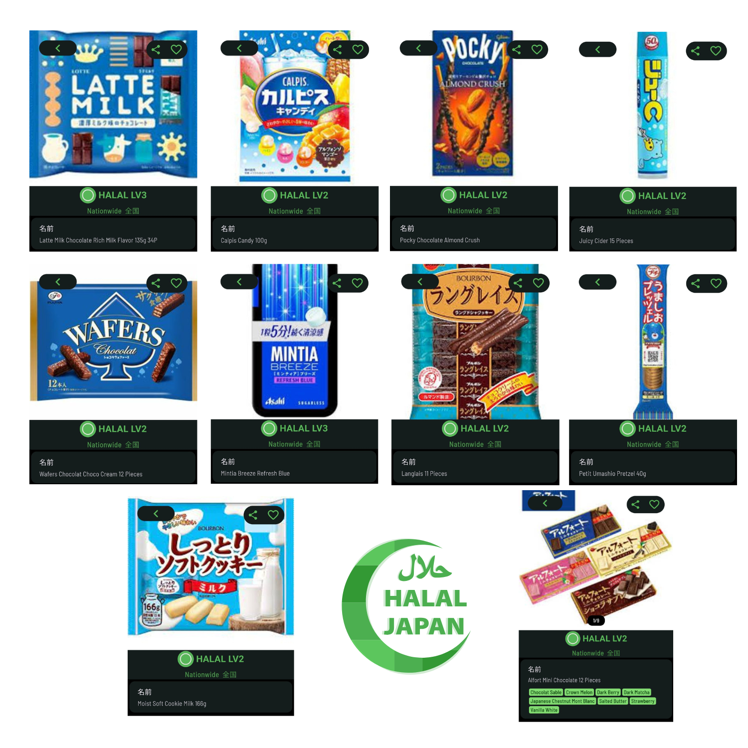 All snacks are factory-sealed, made in Japan, and Muslim-friendly.